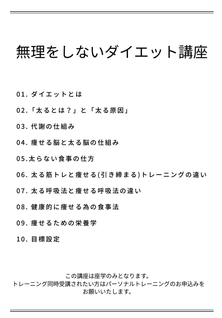 ↑こちらが、無理をしないダイエット講座のカリキュラムになります。