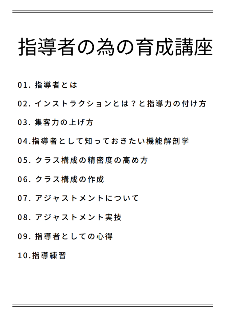 指導者になって経験も積んでいるのに実績が出ない方。また指導者のみで生活ができなくダブルワークなどされている方。指導者のみで行きていけるスキルを全てお伝えさせて頂きます。